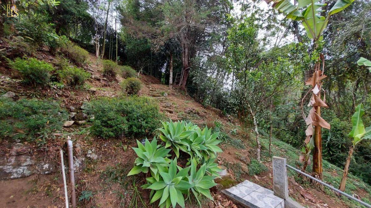 Área do Terreno medindo 1.077 m², com jardim, árvores frutíferas, casa de caseiro e água de nascente.