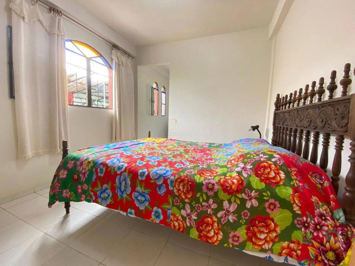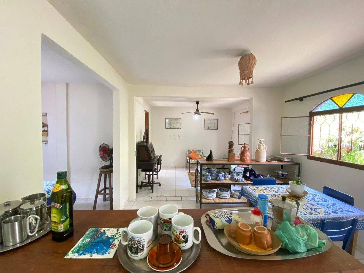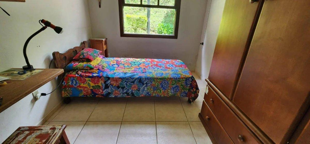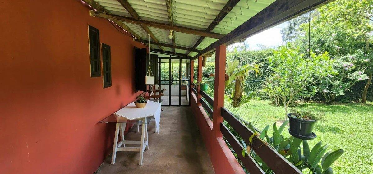 A casa de hospedes conta com uma sala em conceito aberto com a cozinha, dois quartos sendo 1 com suíte e outro com closet, banheiro social e varanda com vista para orquidário.